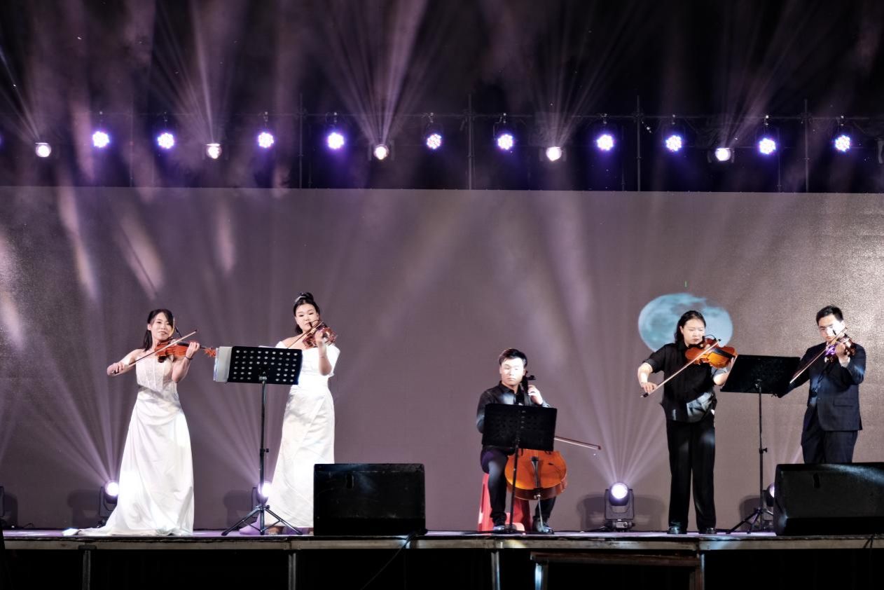 音乐舞蹈学院精心准备了格调高雅、内涵丰富的音乐舞蹈作品。弦乐四重奏《彩云追月》《梁祝》拉开了此次音乐会的序幕,活力四射的舞蹈《青苹果乐园》,国风气息浓厚的群舞《蛾儿雪柳》,体育舞蹈《舞韵》,浓浓思乡气息与歌唱西藏美丽景色的歌曲《鸿雁》《卓玛》,流行歌曲《河流》《鲜花》《特别的爱给特别的你》,体育舞蹈《舞韵》等节目精彩纷呈,给游客们带来完美的视觉听觉盛宴。