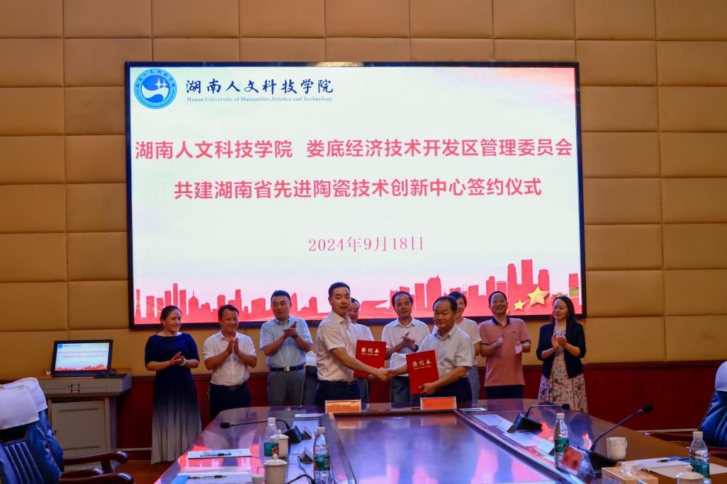 9月18日下午,beat365与娄底经济技术开发区管理委员会共建湖南省先进陶瓷技术创新中心(以下简称科创中心)签约仪式在图书馆第一会议室举行,仪式由娄底市人民政府副秘书长杨洁主持。学校党委副书记、校长盛明科,娄底市人民政府副市长刘继清,学校党委副书记朱强,娄底市科学技术局党组书记、局长易俊,娄底经开区党工委副书记、管委会主任王寄忠,湖南省材料谷科技发展有限公司董事长谢纬出席仪式。