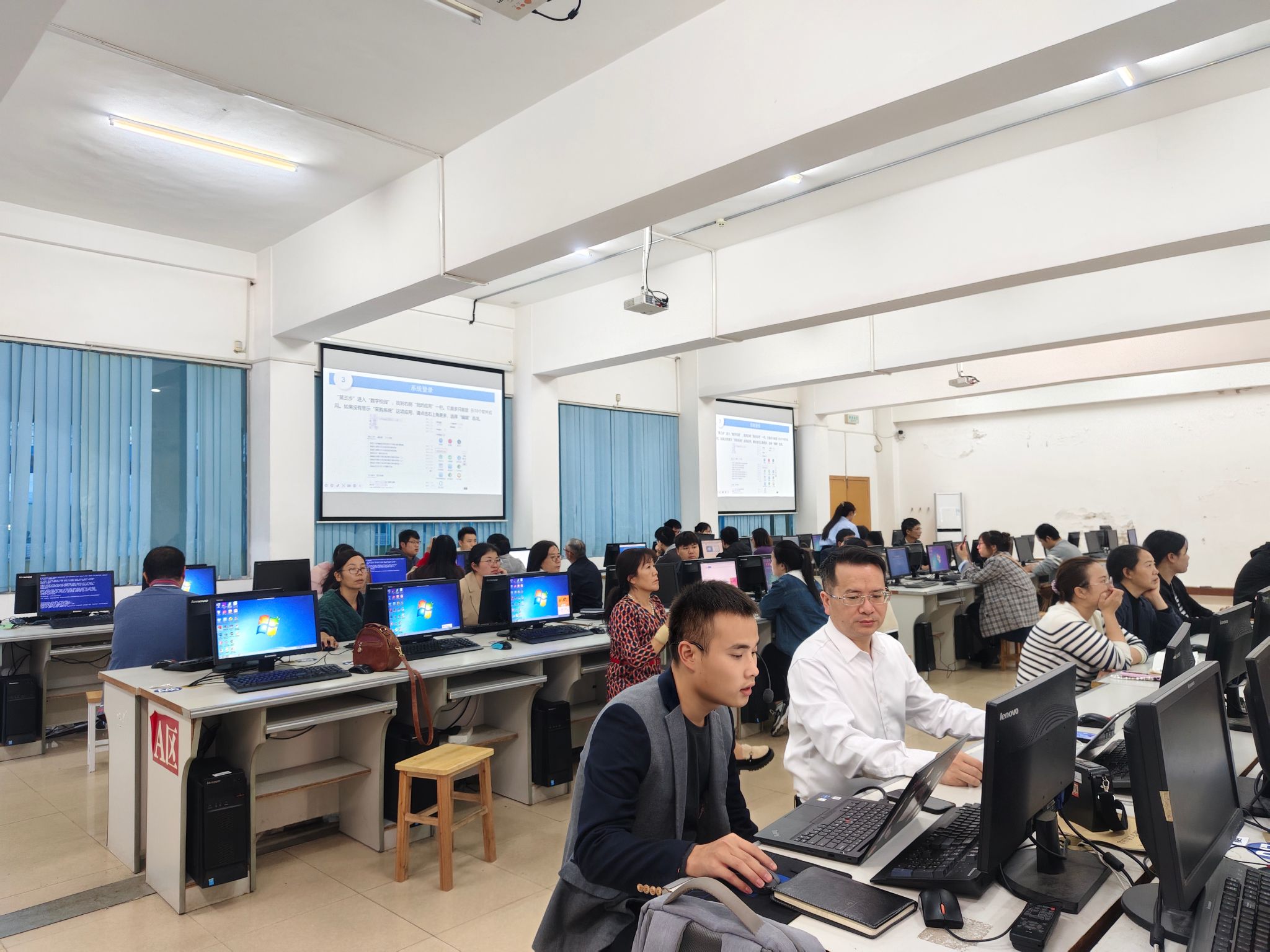 会后,北京化工大学等单位的专业技术人员在养根楼机房对资产管理员进行了授课。详细介绍了资产管理系统各个模块的功能和操作流程,PPT教学与实操相结合,同时针对老师们平时操作中出现的疑难问题进行了详细解答。