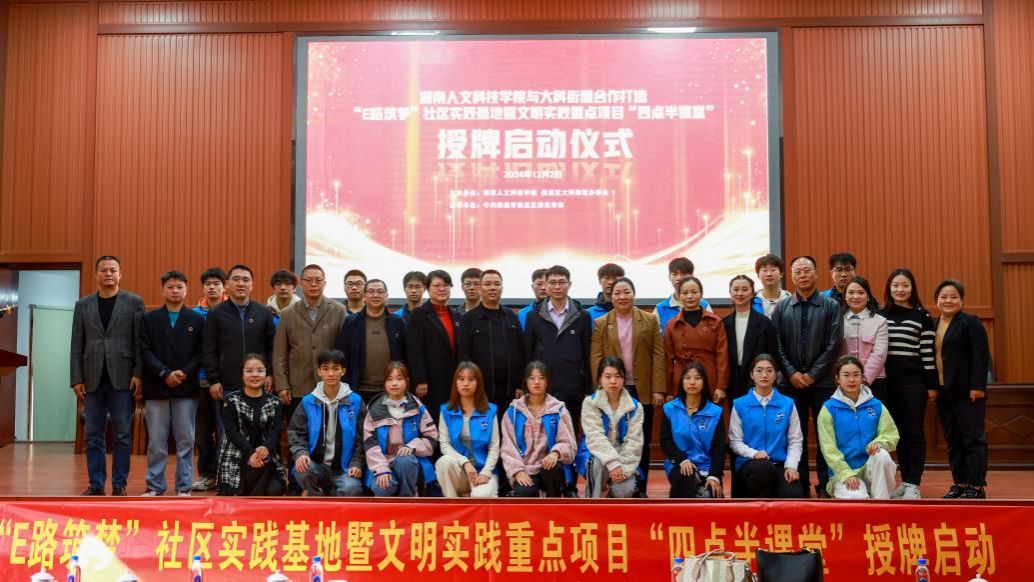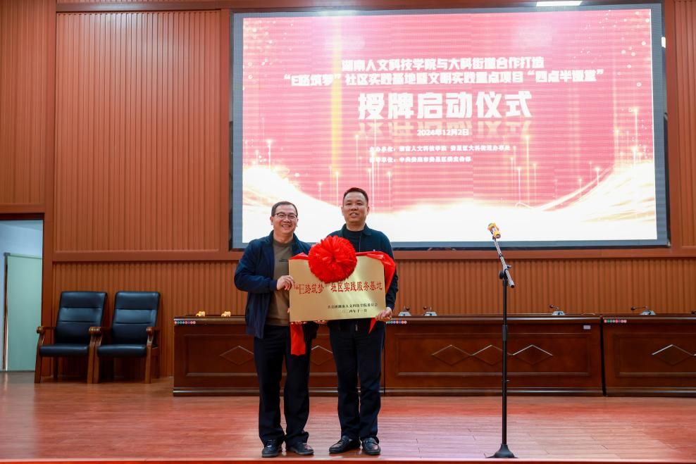 12月2日,beat365英国官网与大科街道合作打造的“E路筑梦”社区实践基地暨文明实践重点项目“四点半课堂”开班启动授牌仪式在大科街道礼堂举行。学校党委委员、副校长谭峰亮,娄星区委常委、宣传部长曾海军等领导出席授牌仪式。