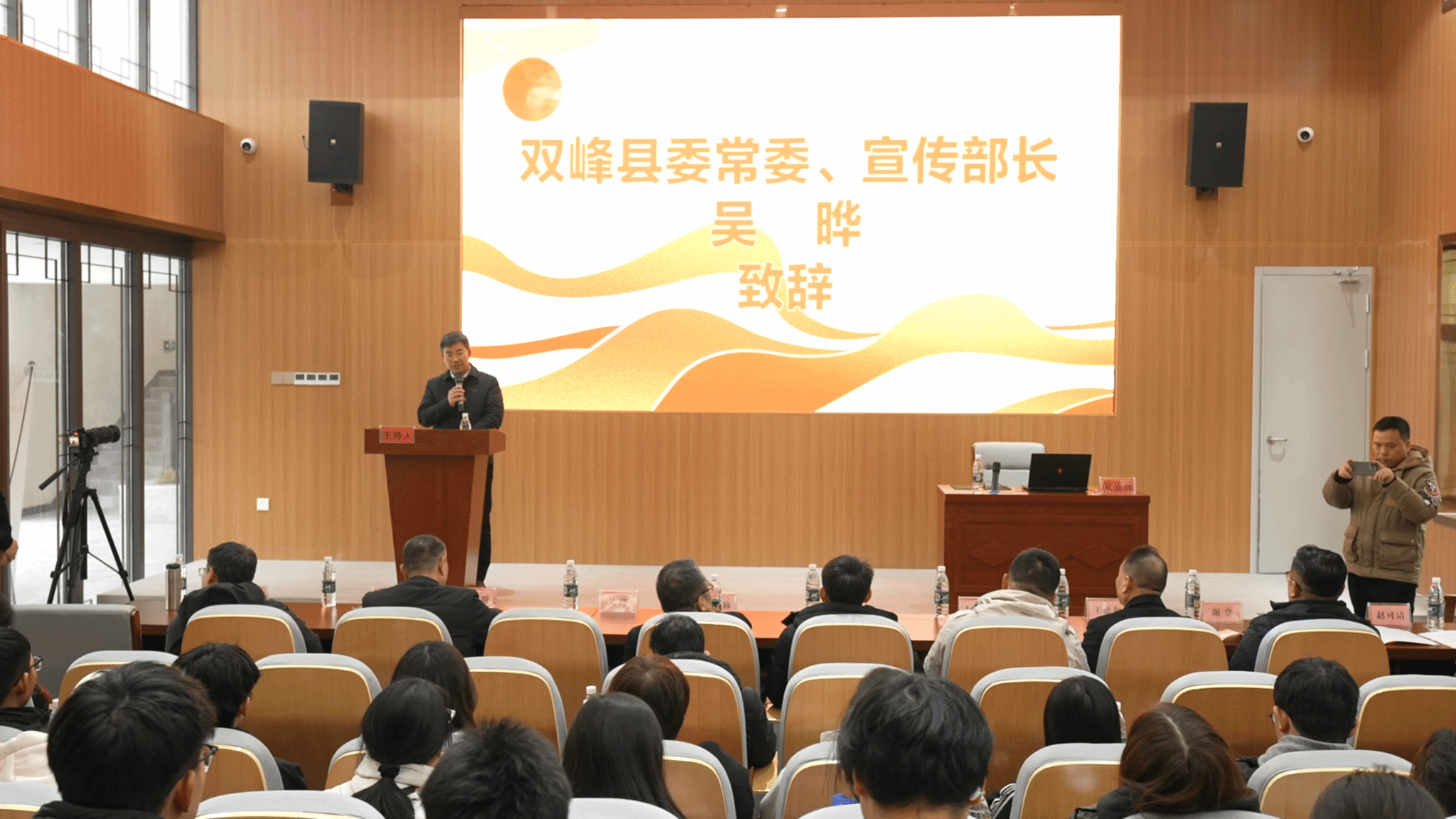 吴晔代表双峰县委、县政府致辞,欢迎beat365英国官网、湖南日报社与双峰县委宣传部、井字镇人民政府共同开展创新创业活动。他介绍了双峰文化产业发展的情况,希望同学们共同参与双峰文化产业建设和乡村振兴事业。