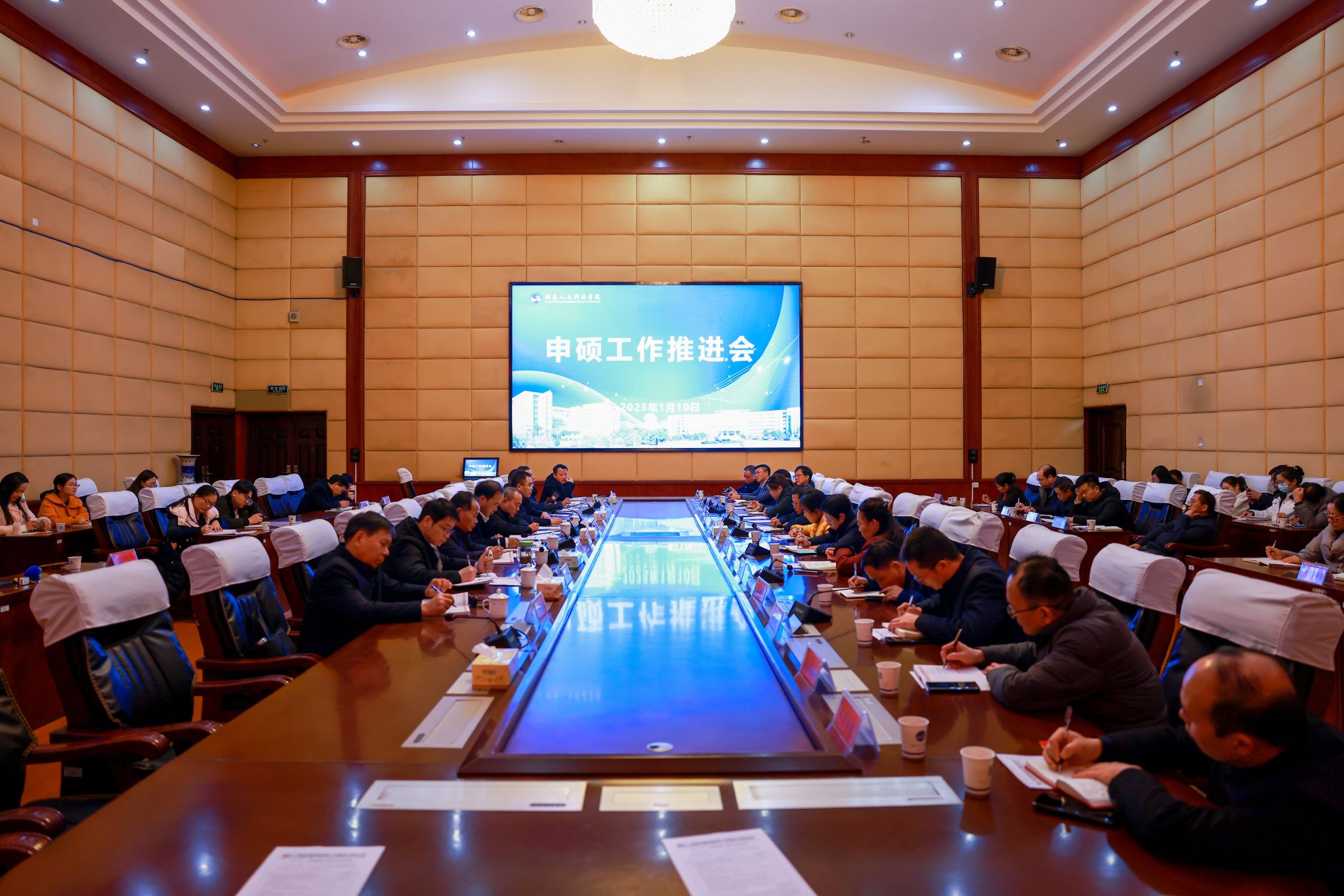 1月10日下午,学校在图书馆第一报告厅召开申硕工作推进会。全体在家校领导出席,党委委员、副校长刘铁峰主持会议