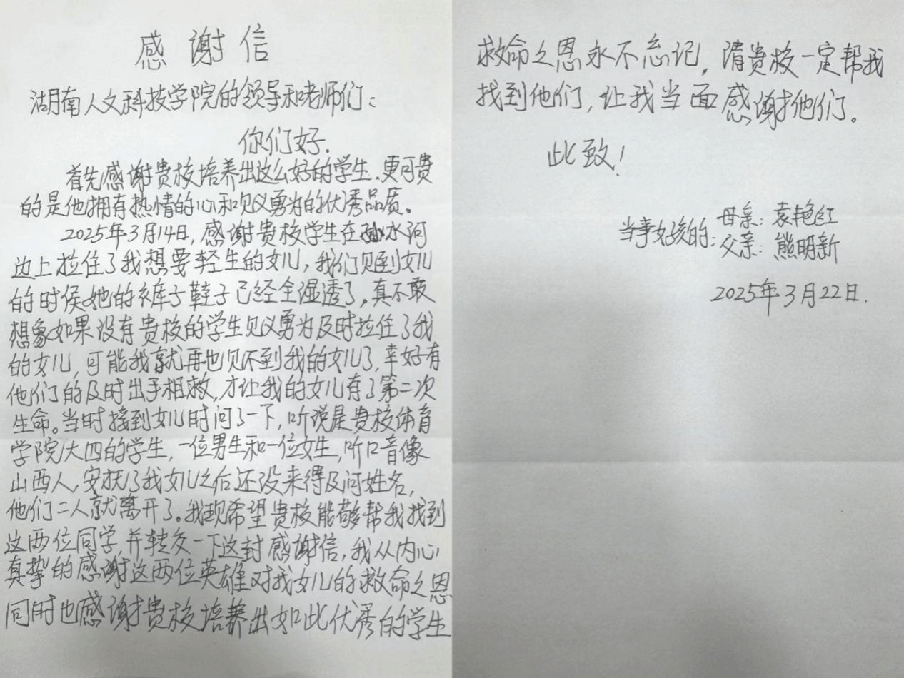 3月27日上午,一位中年男子手捧一封感谢信与一张略显模糊的照片,走进了学校体育学院办公室,他是为了寻找那位从死神手中挽救女儿生命的救命恩人。