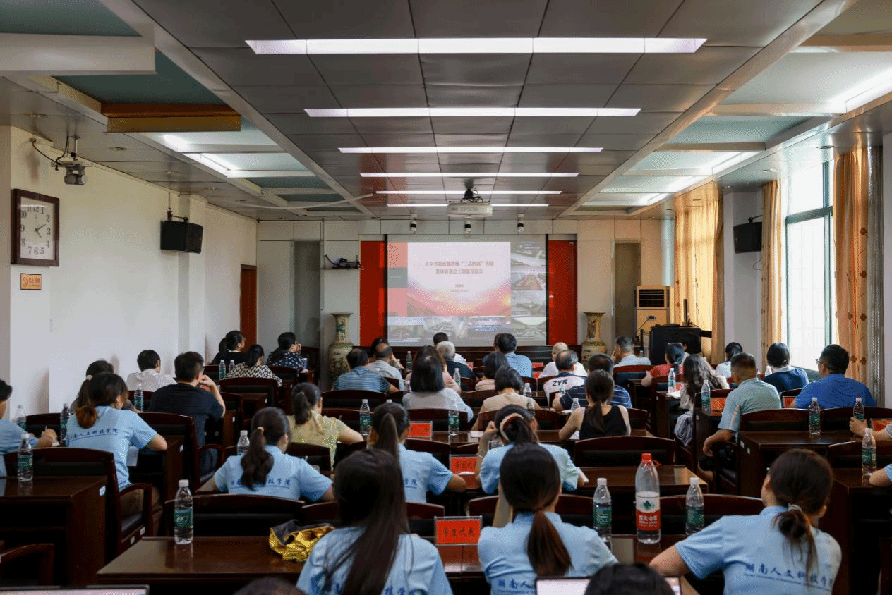 7月16日至18日,全省思政课教师“三高四新”省情集体备课会在湖南大学大礼堂隆重举行。校长盛明科,马克思主义学院院长于意在湖南大学主会场参会,党委副书记朱强率宣传部、组织部、统战部、学工部、教务处、团委、创新创业学院等职能部门负责人及马克思主义学院全体教师通过线上方式,在分会场同步参会。
