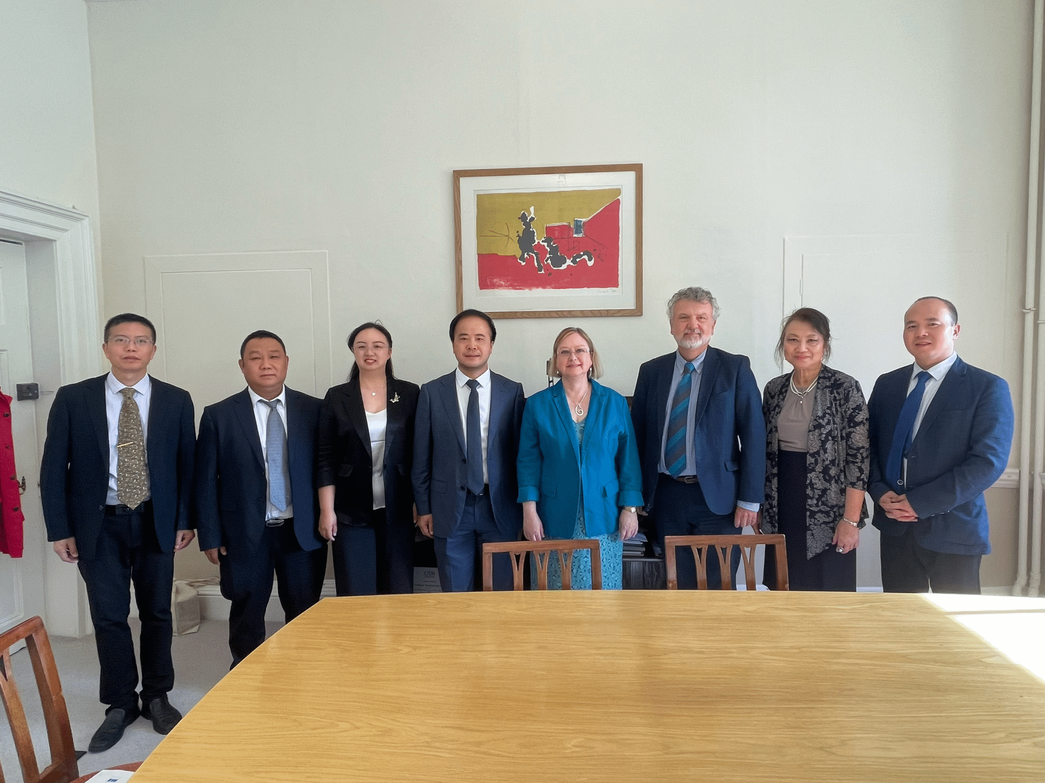 在巴斯斯巴大学,代表团与学校校长Georgina Andrews、副校长Simon Haslett、副校长John Strachan以及国际招生与合作部、教育学院负责人等举行会谈。座谈会上,英方校领导表达了对学校代表团一行到访的热烈欢迎,详细介绍了巴斯斯巴大学的情况,着重强调了学校在教育和人文领域的深厚底蕴,并对两校合作办学项目的深化表达了诚挚的意愿。盛明科向英方介绍了学校在联合培养项目方面的教育教学、实践实习、招生就业等方面的创新与改革。双方还交流了两校合作项目10年的主要成果,围绕中英合作办学项目的学生交流、课程建设、科研合作、数字教育、文化交流等主题展开深入探讨,就中英合作办学项目的具体实施、促进双方教学资源的共享、未来十年的合作进行系统谋划,达成多项共识。会上,两校签署了新的合作办学协议。