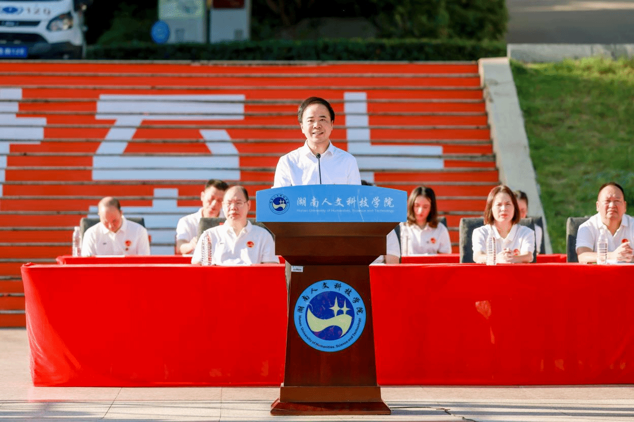 校党委副书记、校长盛明科以《做眼里有光的人文科技学子》为题讲话。他首先代表学校向新生致以热烈欢迎。讲话中他以纪念抗战胜利80周年阅兵仪式为切入点,回顾了中华民族从苦难走向辉煌、从艰苦奋斗到科技强国的伟大历程。他寄语新生:一要眼里有“信仰之光”。要弘扬爱国主义精神,将个人理想融入国家发展,以青春之我奉献青春之中国。将个人理想融入国家发展,保持对知识的渴望,对真理的追求,对美好的向往,努力成长为德智体美劳全面发展的社会主义建设者和接班人。二要眼里有“善良之光”。要践行社会主义核心价值观,保持心底最纯粹的善意,成为一道光,照亮自己也温暖他人。三要眼里有“奋斗之光”。要懂得喷泉之美源于压力,瀑布之壮在于无路可退,滴水穿石贵在坚持。要勇于面对压力与挑战,用坚持和行动成就自我。掌握立足社会的“硬技能”,培育决定人生高度的“软实力”,在大学阶段书写精彩人生篇章。