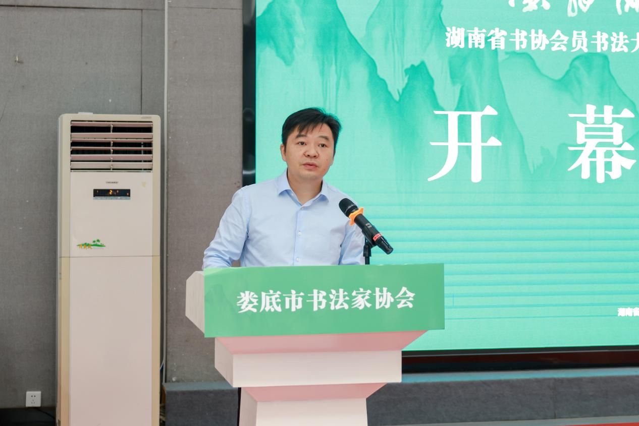 莫小佳作讲话。他表示,娄底市委、市政府高度重视文艺事业发展。希望全市广大书法工作者要以此次展览为新起点,始终坚守中华文化立场,自觉担当文化使命,努力创作出更多精品力作,用笔墨讲好娄底故事,用艺术赋能社会发展,为全面提升娄底文化软实力和影响力作出新的更大贡献。随后,他宣布展览开幕。