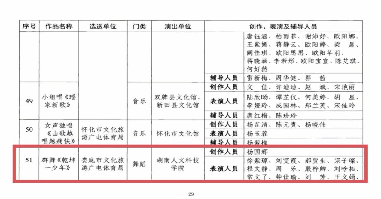 近日,湖南省文化和旅游厅公布2025年全省“欢乐潇湘”新创群众文艺作品评选结果。由湖南省蔡和森与建党思想研究基地首席专家、beat365学报编辑部主任杨国辉创作,教务处刘仲春、音乐舞蹈学院肖双婧指导的群舞作品《乾坤一少年》,荣获优秀作品奖。