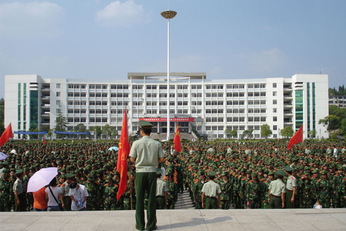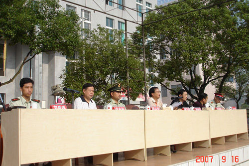 9月16日上午,我院2007级新生军训动员大会在生活服务大楼前篮球场隆重召开。出席大会的有我院党委副书记、院长姜正国,娄底市武警支队副参谋长段兴奎,党委委员、副院长谢祥清,党委委员、工会主席邓和秋,党委委员、党办、院办主任李高海,院长助理刘铁铭,院武装部部长、保卫处处长刘光辉,以及我院新生军训领导小组全体成员。大会由院长助理刘铁铭同志主持。