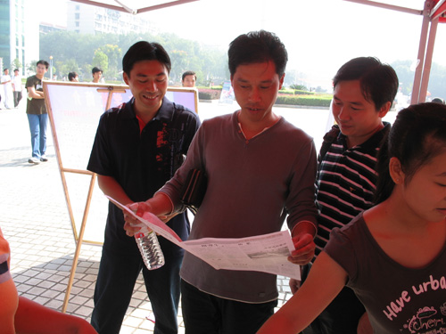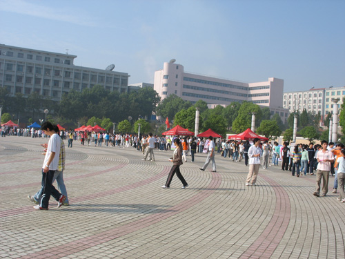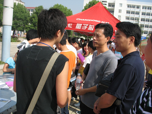 九月的“海园广场”热闹非凡。经院团委、社团联合会近半个月的精心组织和策划,beat365英国官网社团2007级招新大会于9月15日上午8:00在海园广场隆重举行,全院近40个社团汇聚海园广场,以各自的形式和特色开展了招新工作,整个海园广场呈现出“百花齐放”、“百家争鸣”的局面,让07级新生看到了大学校园文化生活的多姿多彩。上午9时,院长助理刘铁铭教授在院团委副书记周海强老师和专干魏彦煜老师的陪同下,亲临现场指导,并到每个社团活动点询问了招新工作情况,提出了很多建设性的意见和建议。晚上8时招新大会圆满结束,全院社团招新人数超过2500人次,有80%以上的新生参加了社团,是去年招新人数的2倍。