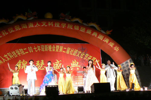 9月26日晚7:00,由院党委宣传部、院团委主办,院音乐系锦瑟艺术团承办,院社团协办的2007年迎新晚会暨第二届社团文化节开幕式“锦瑟盛典”在海园广场隆重举行。党委委员、纪委书记李尚益同志,党委委员、党办院办主任李高海同志,院长助理刘铁铭同志,音乐系党支部书记张一凡同志,音乐系副主任谭建光同志,团委书记侯建斌同志,院团委副书记周海强、谢柳同志,各系团总支书记、辅导员及各班班主任出席了此次盛典。