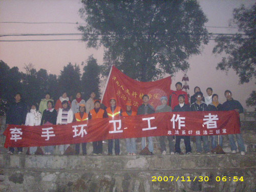 为增强同学们的环保意识,12月1日凌晨4:15至上午10:00,政法系07法二班在佳惠超市附近的干道路段上开展了一次以“牵手环卫工作者”为主题的优秀团活动。