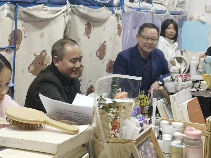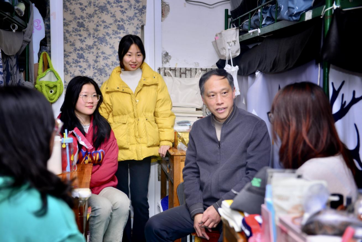 校长刘铁铭来到17栋309室、15栋302室与同学们亲切交流。在17栋309室,铁铭校长和大家围坐在一起,仔细询问每一位同学的情况,了解大家学习生活上的现状和需求,倾听大家对学校的意见。通过讲述发生在湘赣一带的革命故事,他勉励同学们铭记历史厚植爱国主义情怀。在15栋302室,铁铭校长与大家讨论起专业学习以及如何提高自我能力。他以自己早年勤工俭学的经历为例,鼓励大家坚定理想信念,增强责任担当意识,在实践中不断完善自我。每到一处,铁铭校长都叮嘱同学们加强时间管理,养成良好的学习生活习惯,注意个人身心健康,加强体育锻炼,鼓励同学们做好职业生涯规划,提高综合能力。铁铭校长还与同学们互留联系方式,并表示他随时愿意为学生排解困惑。