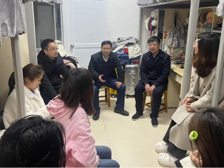 为深入学习贯彻党的二十大精神,进一步加强开学初学生思想政治教育,培养学生“责任·担当”意识,切实打造后疫情时代学校思想政治工作优良生态,3月1日晚,全体校领导和中层干部深入学生寝室开展专题“三联系”。领导们围绕疫情防控、社会经济发展、校园常态化管理等方面做思想引领,解答学生关于疫情防控调整为乙类乙管后的各类思想困惑和主要问题,引导学生科学认识疫情,坚决拥护党中央和省委省政府决策部署,坚定对未来的信心,尽快适应疫情变化和回归常态化校园学习生活;了解和帮助解决学生在生活学习中的困难。