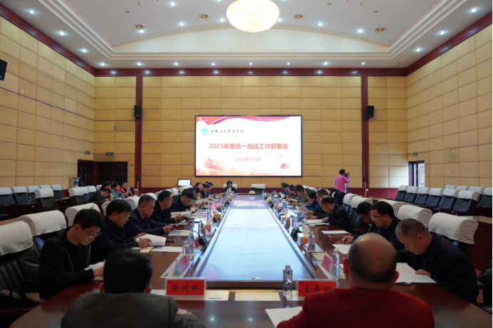 3月9日下午,学校2023年度统一战线工作部署会在图书馆第一会议室召开。各二级学院党总支书记、学校各民主党派、侨联、知联会代表等参加。党委副书记李军林出席并讲话,宣传统战部常务副部长谢柳主持。