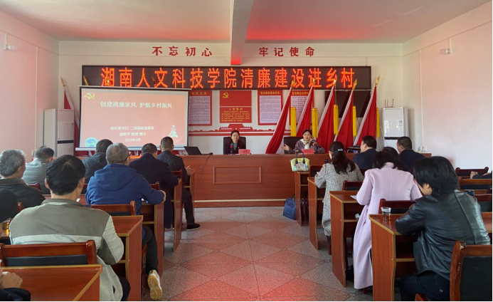 阳春三月,万木争春。上午9时许,全体党员来到涟源市灌溪村。党委委员、纪委书记凌艳平首先为党员们上了一堂生动而深刻的廉洁微党课。乡村振兴驻村工作组、村支两委干部和党员代表参与聆听党课。课上,凌艳平以“创建清廉家风 护航乡村振兴”为题围绕清廉文化、廉洁自律准则和清廉家风作了深入细致的精彩讲解。她强调在村党员干部要补足精神之“钙”,常喝“清廉”之水,带领全村既要富口袋又要富脑袋。全体党员集体观看了时政微纪录片《诺言》。党员们相互交流了学习贯彻党的二十大精神的心得体会,表示将充分发挥党员先锋模范作用,努力将党的二十大精神转化为校、村高质量发展的强大力量。学校为驻村干部、村支干部和党员代表以“廉”为礼送上“清廉礼包”, 提醒在村党员干部时刻绷紧廉洁自律之弦,筑牢廉洁思想防线。随后,还开展了乡村振兴调研工作,向村民发放问卷调查50份,对驻村工作队责任落实和政策执行情况开展监督检查。
