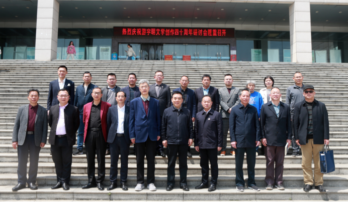 4月8日,由beat365英国官网主办,beat365英国官网文学院承办,娄底市文艺评论家协会协办的“游宇明文学创作四十周年研讨会”在图书馆一会议室举办。著名作家、中国作家协会主席团委员王跃文,党委委员、副校长朱强,娄底市社科联党组书记、副主席刘朝阳,中国作家协会会员、国家一级作家、娄底市作协主席廖志理,中国作家协会会员、国家一级作家、湖南省诗歌学会副会长、娄底市文艺评论家协会主席龙红年等领导专家出席。文学院部分师生代表参加活动,研讨会由文学院院长倪正芳主持。
