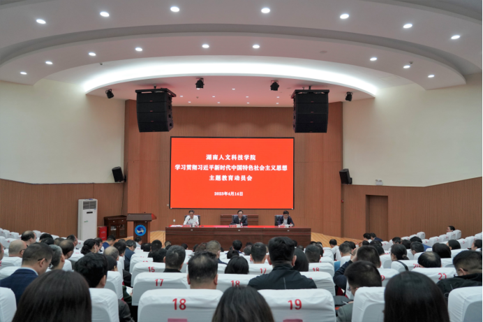 4月14日上午,学校在匠成楼报告厅召开学习贯彻习近平新时代中国特色社会主义思想主题教育动员会。党委书记刘铁铭作动员讲话,对主题教育进行全面部署。省委巡回指导组第二十九组组长,省乡村振兴局党组原书记、原局长,省人大常委会委员、农业委副主任委员王志群作指导讲话。省委巡回指导组第二十九组副组长、怀化学院党委副书记鲁荣波,指导组成员傅乐平、胡宇、宋保龙、康仁,全体校领导,近三年退出领导班子的校领导出席大会,全校副处级以上干部和教师代表参会。