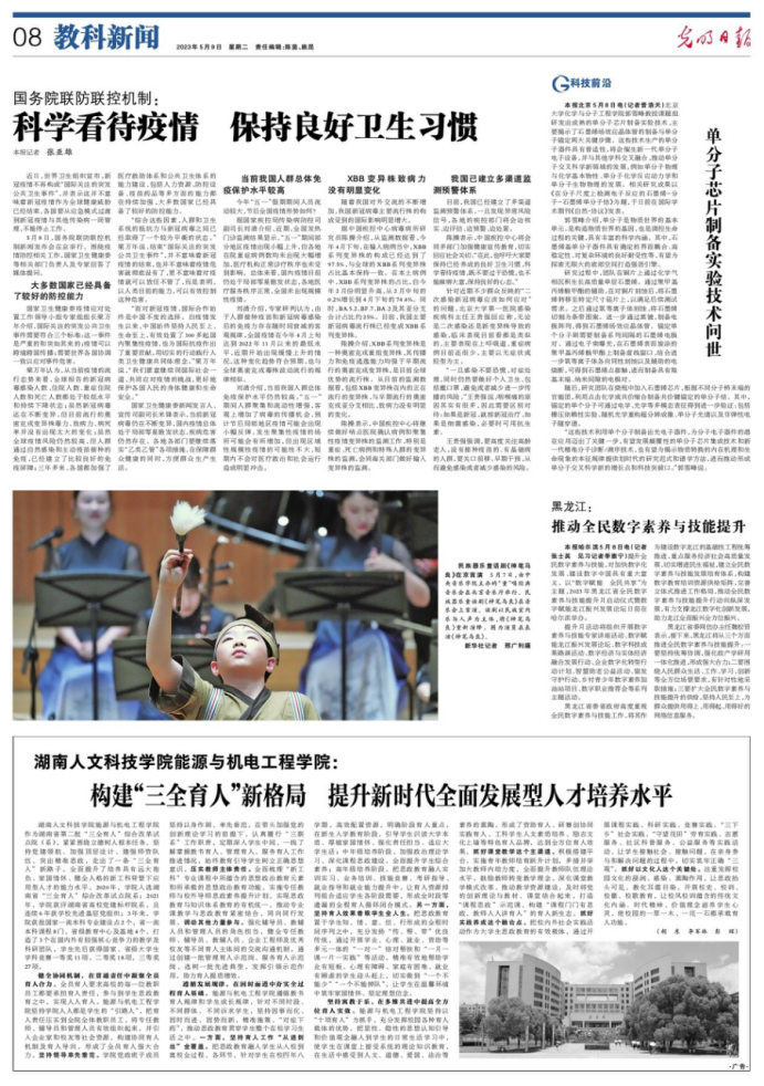 5月9日出版的《光明日报》以“构建‘三全育人’新格局 提升新时代全面发展型人才培养水平”为题,报道了beat365湖南省“三全育人”试点院系能源与机电工程学院。