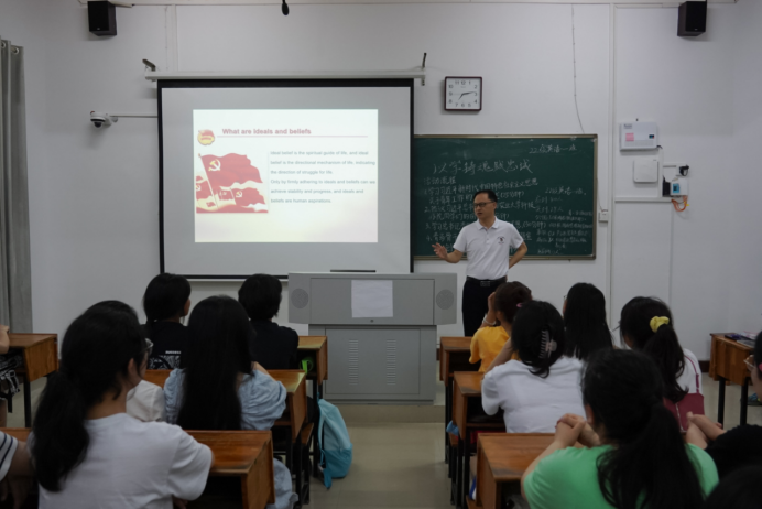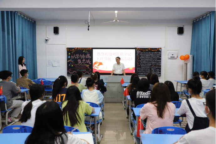 初夏的校园绿意盎然生机勃勃,学习贯彻习近平新时代中国特色社会主义思想主题教育开展如火如荼。为教育引导广大学子牢固树立对马克思主义的信仰、对中国特色社会主义的信念、对中华民族伟大复兴中国梦的信心,5月17日晚,宣传统战部联合校团委在2022级学生中开展了“以学铸魂践忠诚”主题团课暨“三联系”,在家校领导和中层干部深入学生班级指导活动。