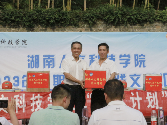 刘铁铭在捐赠仪式上发表讲话。他肯定了学校多年来在灌溪开展的志愿服务工作,希望同学们不负使命,努力做好社会实践,通过社会实践提高自身综合素质。