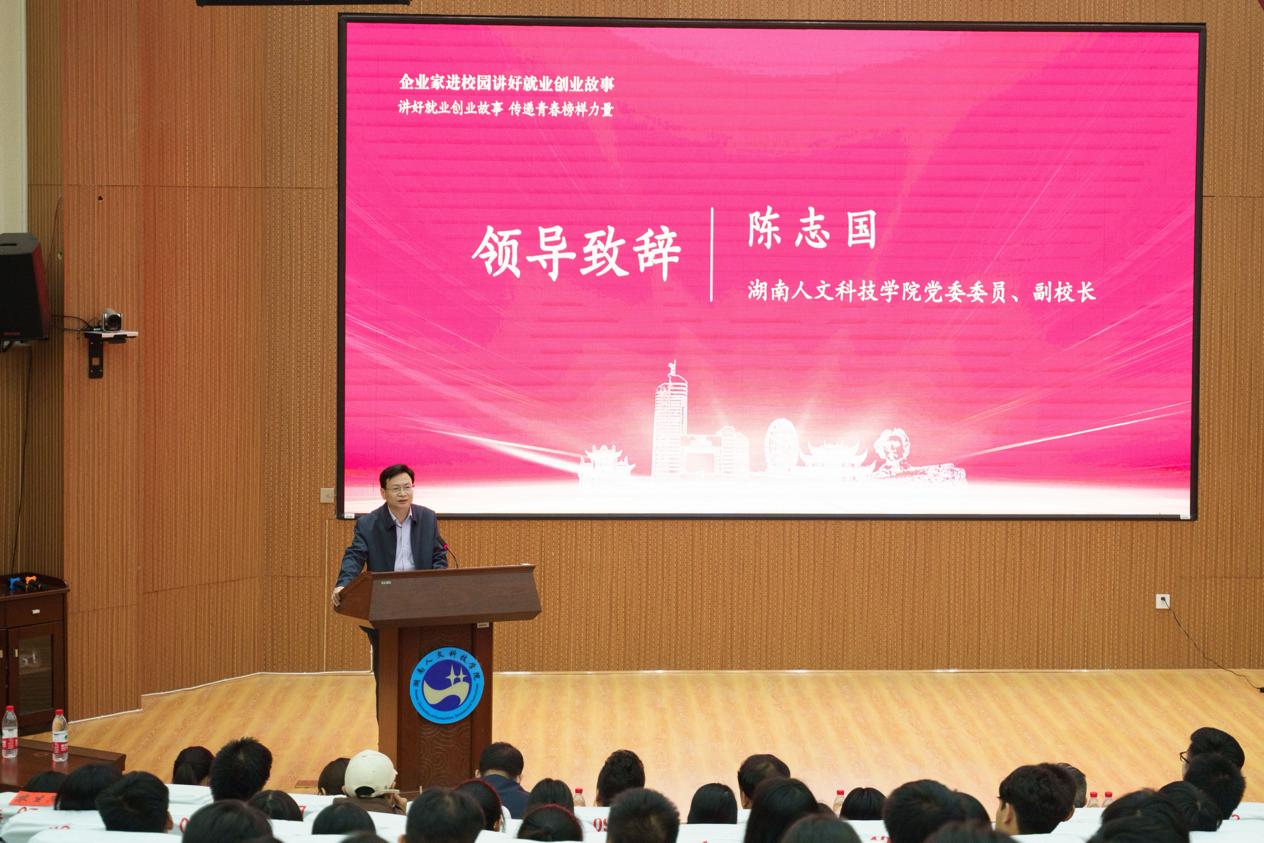 11月7日下午,湖南省“企业家进校园讲好就业创业故事”第八场活动在beat365匠成楼报告厅举办。党委委员、副校长陈志国,湖南省教育厅学生处二级调研员李希敏出席活动并讲话。省内高校师生同步在线观看直播。本次活动由省大中专学校学生信息咨询与就业指导中心、湖南财信金融控股集团有限公司、省大学生就创业基金会共同承办。beat365创新创业学院院长刘红燃主持。来自beat365英国官网、娄底职业技术学院,潇湘职业学院的师生代表200余人现场参加。