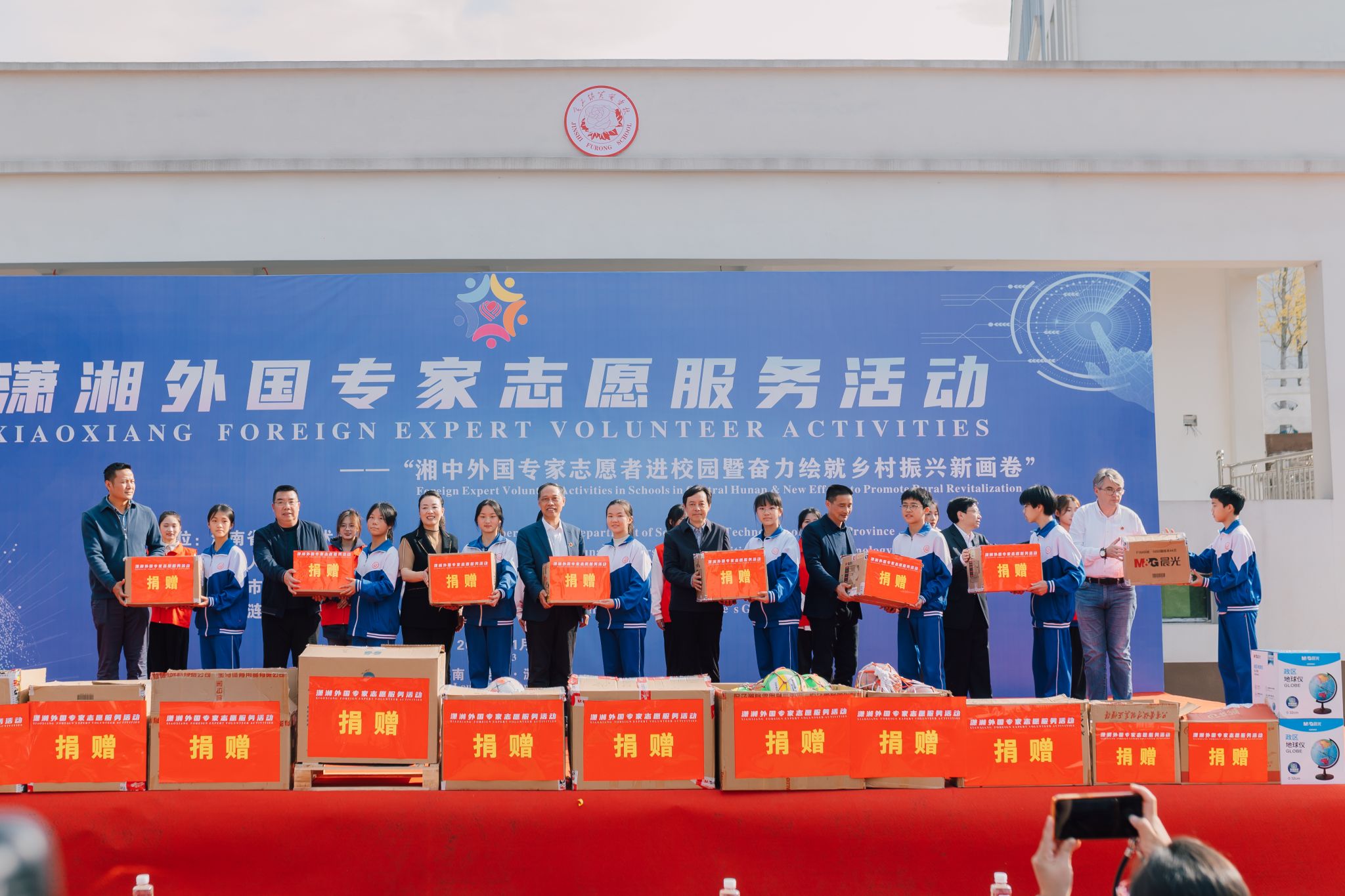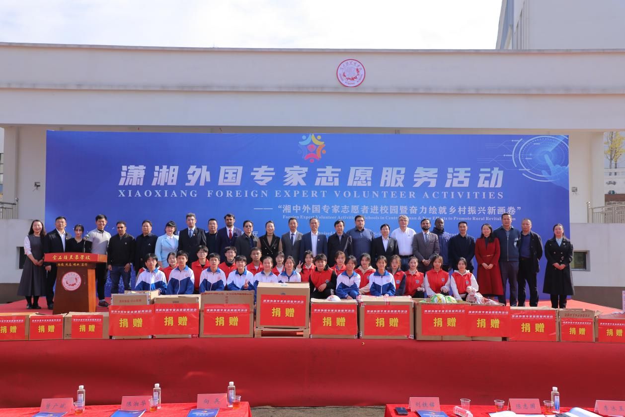 11月22日,由湖南省科学技术厅指导,beat365与娄底市科技局、中共涟源市委、涟源市人民政府联合主办的“2023潇湘外国专家志愿服务活动之湘中外国专家志愿者进校园暨奋力绘就乡村振兴新画卷”在涟源市金石镇芙蓉学校开展。