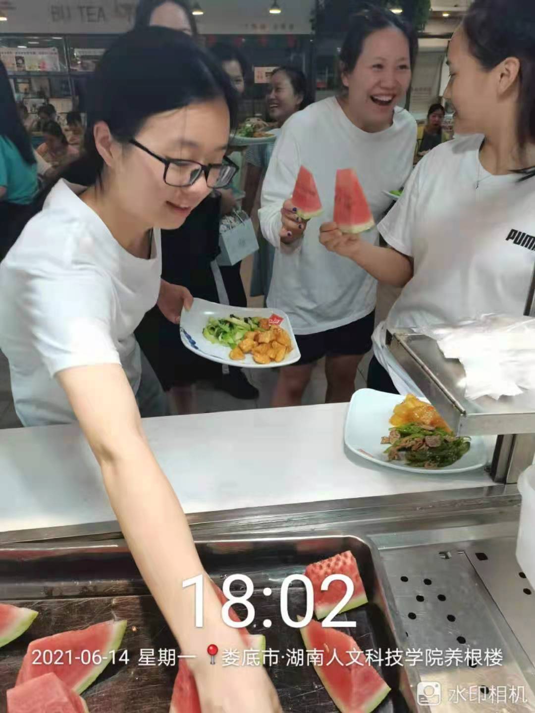 一楼长沙锦茂餐饮管理有很公司行远餐厅端午节当天也是大活动回馈广大师生,端午节送咸鸭蛋达1100个,晚餐送水果西瓜约500斤,得到了师生们的一致点赞,在这个节日带来安慰,虽然远离父母、远离家,但这里可以感受到我们全体食堂员工父母般的关爱。