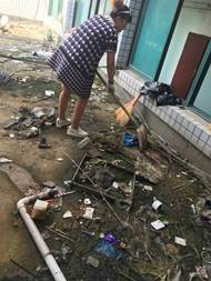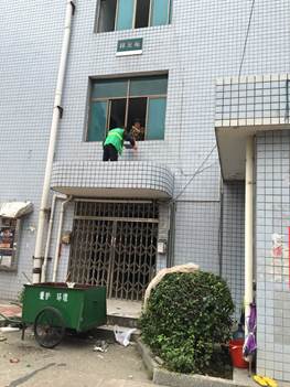 清理教学楼阳台杂物