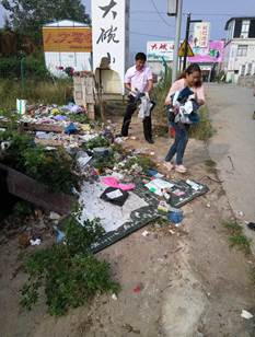 清理体育馆附近杂物垃圾