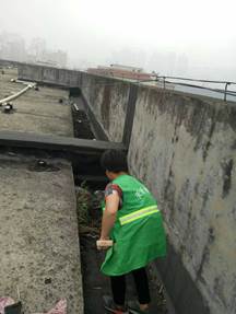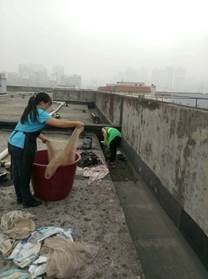 清理清扫天台杂物、对公厕进行全面清洁