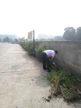 清理校内道路两侧杂草
