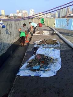全面清理公寓阳台沉积垃圾