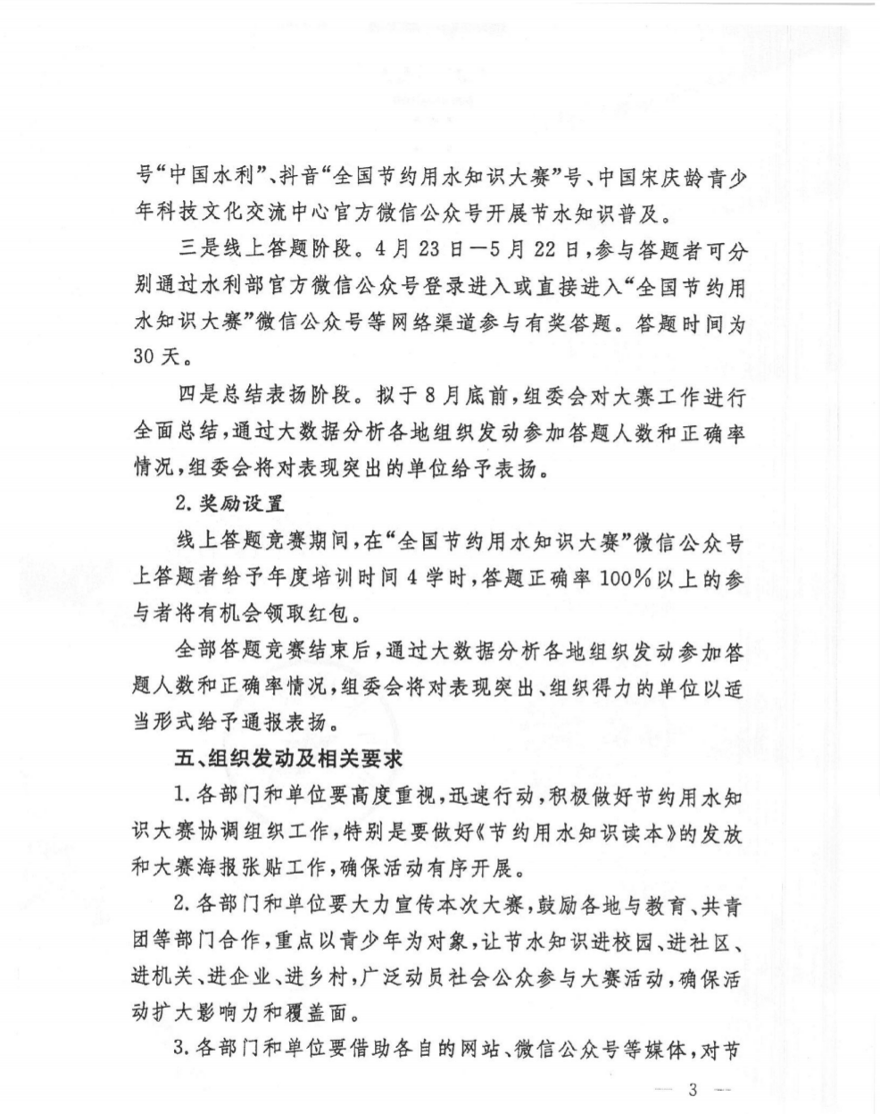 附件:水利部中国宋庆龄基金会关于举办第二届全国节约用水知识大赛的通知