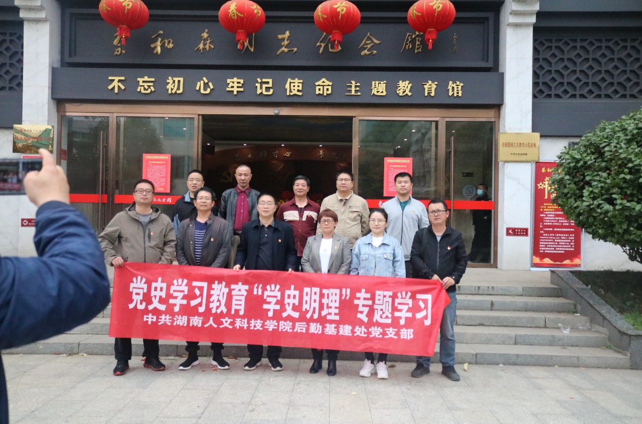 为贯彻落实中共中央《关于在全党开展党史学习教育的通知》及省委相关会议通知精神,开展好党史学习教育第一次专题“学史明理”,后勤基建处领导、全体党员于2021330日下午赴双峰县蔡和森纪念馆开展党史学习教育,推动党史学习教育热潮、深入开展。瞻仰蔡和森光辉一家群雕、参观蔡和森纪念馆、开展党史学习教育主题党课。