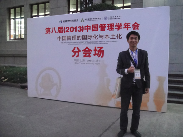 11月7-9日,第八届(2013)中国管理学年会在上海交通大学召开,我系青年教师周贤君博士应邀参加了此次会议。