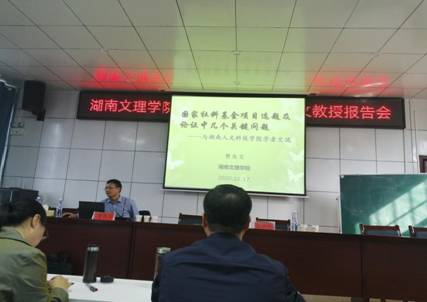 首先,贾教授作了题为“国家社科基金项目选题及论证中几个关键问题”的专题报告,他从课题申报选题、课题申报中的几个关键问题和申报书形式三个方面进行论证,贾教授在报告中结合自身研究经历,穿插案例、引经据典、语言风趣、形象生动,报告会现场氛围热烈。