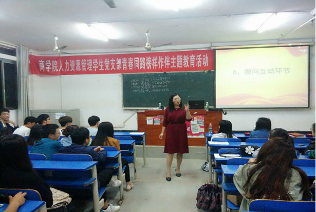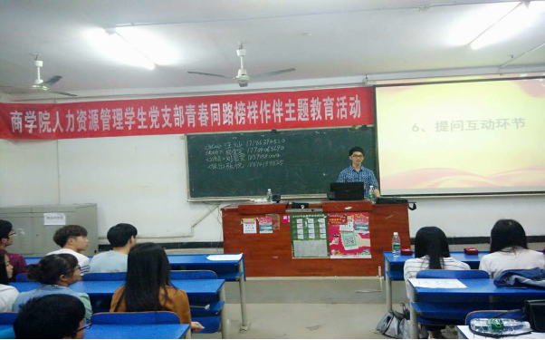 2016年5月20日晚7点30分,由人力资源管理学生党支部策划的“青春同路,榜样做伴”主题教育活动在致远楼309召开。此次主题教育活动主要围绕学习、就业两个方面开展。人力资源管理学生党支部书记刘红燃、支部全体党员、预备党员、入党积极分子、优秀毕业生代表参加了此次主题教育活动。