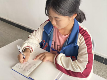 一等奖获得者梁雨正在写家书