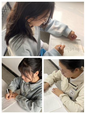 三等奖获得者姚雨欣、朱凤英和单静雯正在写家书