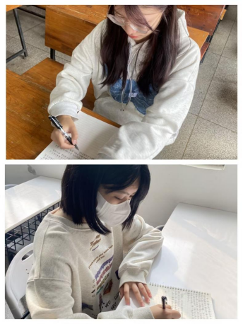 二等奖获得者谢昕玲、谢媛媛正在写家书