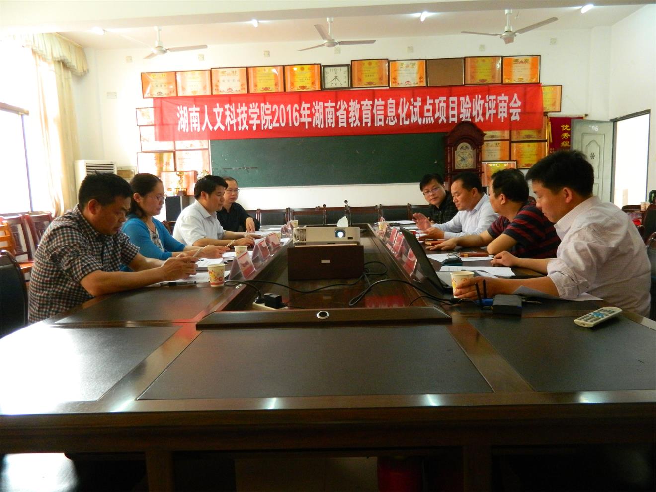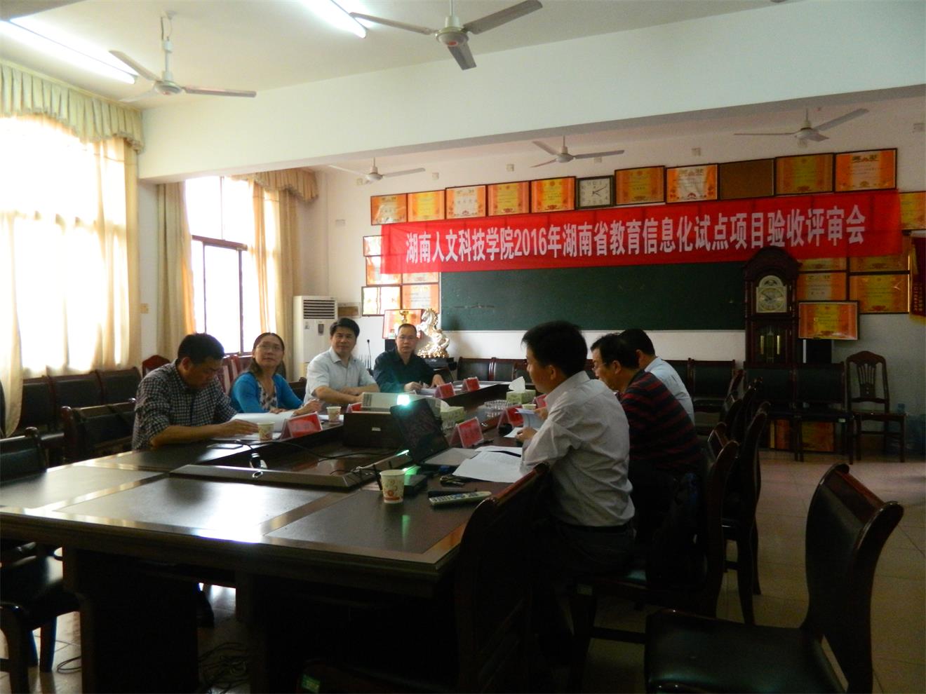2016年5月30日,学校教务处根据湖南省教育厅的要求组织专家评审组在教育信息化试点单位商学院会议室召开湖南省教育信息化试点项目“基于网络学习环境下高等学校课程混合式教学模式的改革与实践”的验收评审会。评审专家组由湖南人文科学学院主管教学工作的副校长周发明教授任组长,成员由娄底市电化教育馆馆长李祥俊,娄底职业技术学院教务处处长游新娥教授,湖南卓普英才教育科技有限公司总经理卓尚清,beat365英国官网教务处处长羊四清教授、商学院院长朱强教授、教育学院院长刘超良教授、创新创业学院院长彭晓华副教授、信息中心副主任刘康珍等组成。