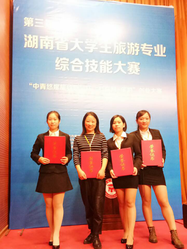 “大学生旅游专业综合技能大赛”与湖南省旅游产业发展的新生态高度契合,与大学生创新创业高度契合,是培养高素质旅游专业人才,实现湖南省旅游业持续、健康和稳步发展,带动全省旅游质量整体提升的有效方式,因此各大高校相当重视。本次大赛的参赛队伍来自全省25所包括湖南师范大学、中南林业科技大学等有独立旅游学院在内的一本、二本院校,参赛队伍达61支。此次获奖,离不开旅游管理专业全体老师、指导老师和三位同学的辛勤付出,也离不开商学院领导老师和学校的大力支持。(商学院供稿)