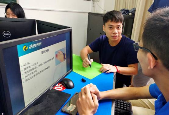 上午卓景京教育的老师依据企业化管理的方式对28名同学进行了分组,并设计了相应的团队建设活动,让大家在轻松的氛围中更好的融入团队之中。同时,老师们给同学们介绍了相关实训内容以及在聊天中传授了丰富的职场工作经验,让大家在模拟的企业工作环境中更好的去适应。