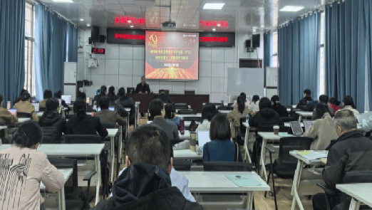 11月11日,商学院党总支理论学习中心组(扩大)在高韵楼101开展2025年第十二次集体学习研讨,全体教职员工参加,党总支书记刘辉主持。