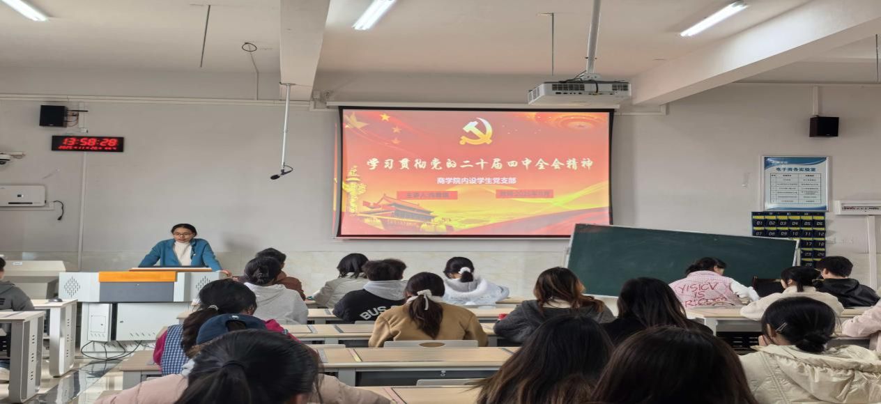 为深入学习贯彻党的二十届四中全会精神,进一步统一思想、凝聚共识,11月20日下午,商学院内设学生党支部于高韵楼313教室集体开展“学习贯彻党的二十届四中全会精神”主题党日活动,全院学生党员积极参加。