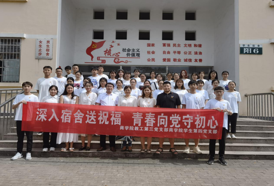 6月15日,beat365英国官网商学院教工第三党支部、学生第四党支部43名师生党员在支部书记刘加林、曾文果的带领下,开展“深入宿舍送祝福,青春向党守初心”主题活动,让党史学习教育“活起来”。