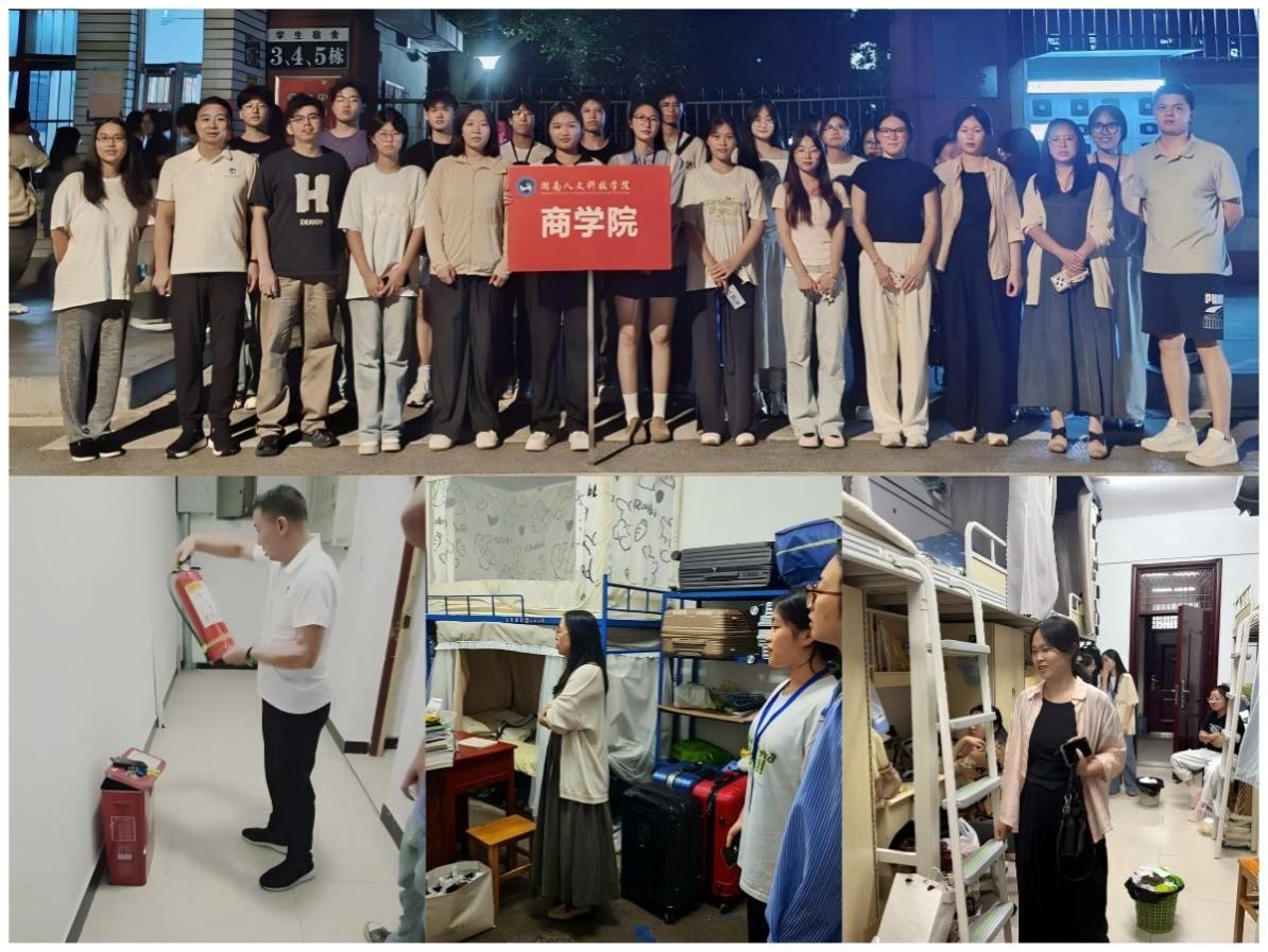为切实保障新生住宿安全,营造安全、整洁的寝室环境10月9日晚,商学院于3栋、18栋开展了2025下半年第次寝室安全大排查活动。此次活动由学院党总支副书记胡益龙带队,全体辅导员、新生班主任以及团学会学生干部共同参与。