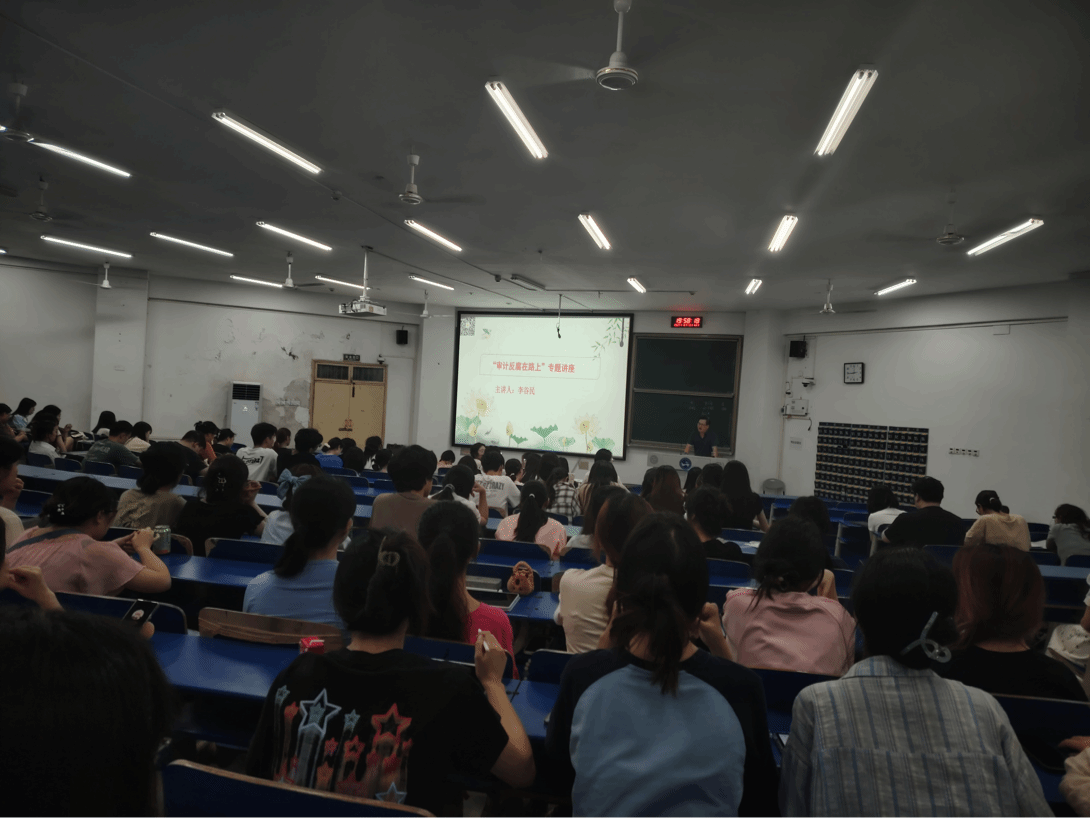 此次讲座不仅仅是专业知识的学习盛宴更是一次重要的思想政治教育课。李谷民理论结合案例,深入浅出,让同学们明白了人以正气立事行正道远,对于即将走入实习岗位的学生来说这也是一场重要的职业教育课希望同学们通过学习积极响应党和国家的号召,顺应审计新形势要求,不惧困难和挑战,开启新征程。