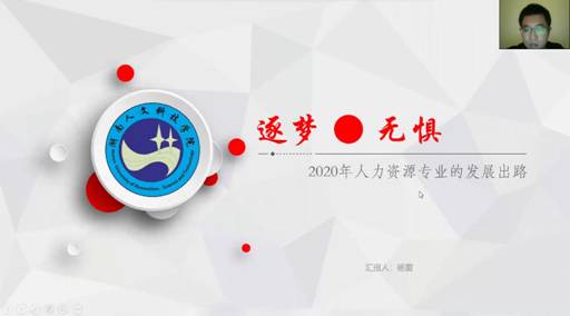 为了进一步了解用人单位岗位人才新需求,以及人力资源管理专业未来发展方向,在2020年6月10日beat365英国官网商学院人力资源管理专业学生与广州优福教育集团人力资源总监杨雷在钉钉平台进行了以“逐梦无惧”为主题的交流分享会。